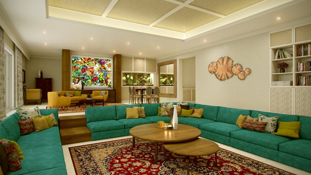 The color and the design are important of course, however, the most important element in majlis design is the ambiance.